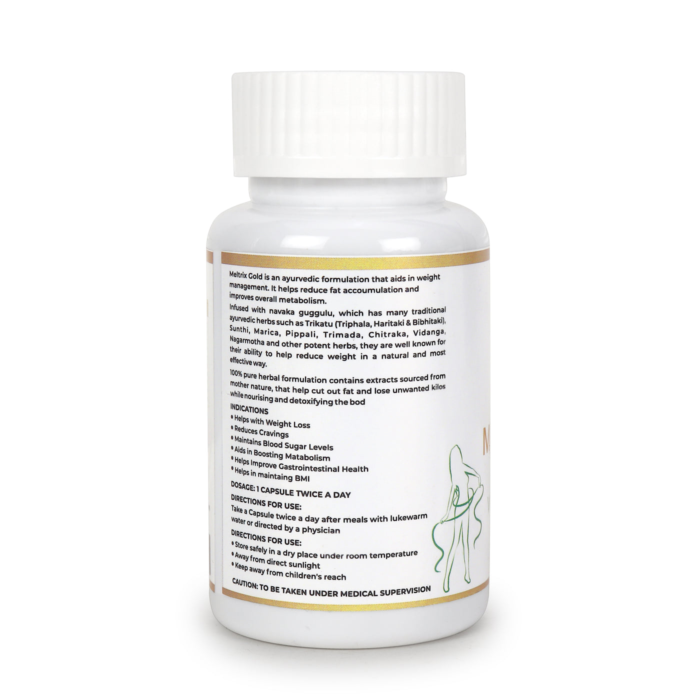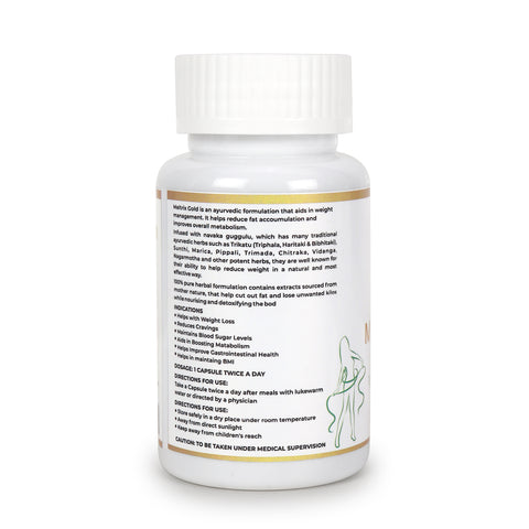Formulated with powerful natural ingredients such as Garcinia Cambogia, Guggul, Moringa, Jeera, and Cinnamon, Meltrix Gold provides both short-term metabolic support and long-term body balance making it a reliable partner in your weight management routine.